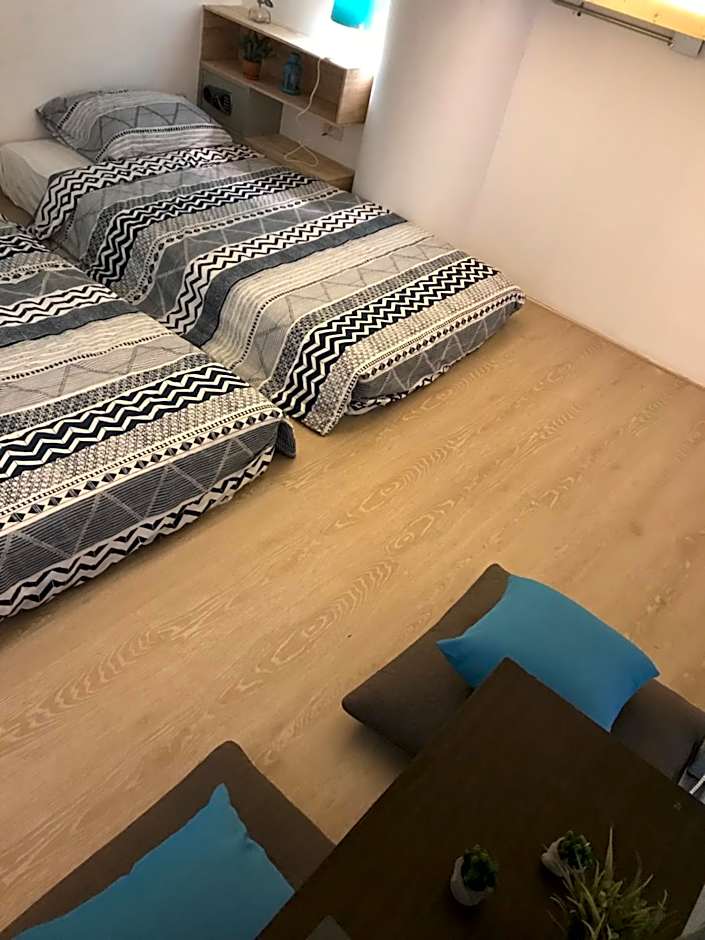 The twin room provides air conditioning, a safe deposit box, as well as a shared bathroom featuring a shower and a hairdryer. The twin room features parquet floors and chocolate. The unit offers 2 futons.